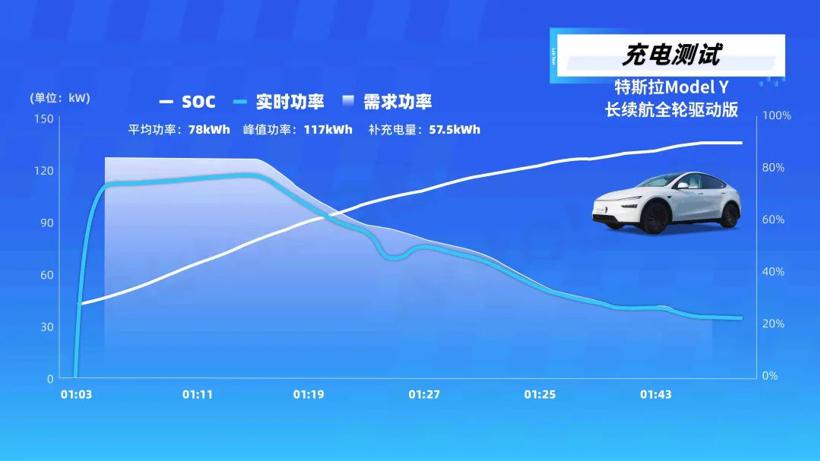 但是作为一款2025年上市的新车来说,特斯拉焕新版Model Y在充电速度方面确实还“差点意思”,特别是在第三方充电桩上,78kW的平均功率,117kW的峰值功率,确实算不上特别出彩。