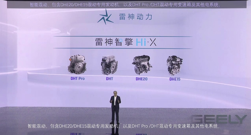同时发布的还有雷神动力模块化智能混动平台-雷神智擎Hi·X。据吉利动力研究院副院长肖逸阁介绍,雷神智擎HiX混动系统包含DHE20/DHE15混动专用发动机,以及DHT Pro/DHT混动专用变速箱及其他电系统,涵盖FHEV/PHEV/REEV等多种混动应用,该系统以43.32%的热效率、全球最高3挡DHT Pro、40%以上节油率、全动力域FOTA等六大混动核心技术上实现全球领跑。