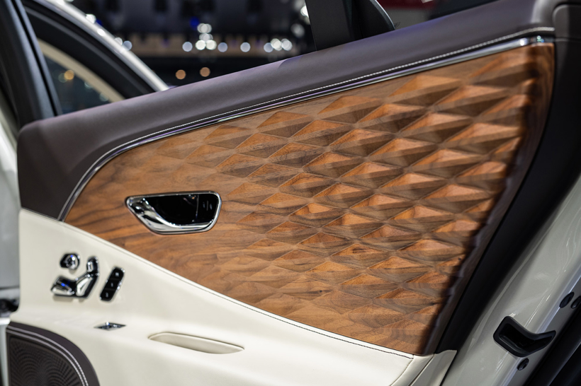 宾利品牌为全新飞驰首次引入立体木饰面板,该全新配置开创了汽车内饰设计的先河,并于北京车展上演全球首秀。立体木制面板由宾利汽车个性化定制部门Mulliner匠造而成,诠释出现代奢华美学格调,带来触手可及的自然之美。后排门板与装饰面板均来自同一块臻选自美洲的黑胡桃木或樱桃木,经由手工打造而成。天然原木的选用符合可持续发展理念,并实现了传统工艺与现代技术的完美融合。
