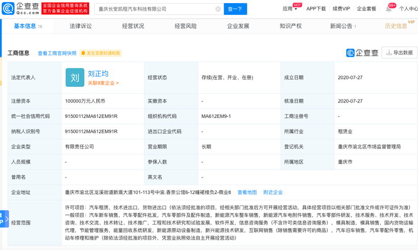 智享车脑从企查查获悉,重庆长安凯程汽车科技有限公司于7月27日成立,注册资本10亿元人民币,法定代表人为刘正均,股东为重庆长安汽车股份有限公司(以下简称“长安汽车”)和重庆临空开发投资集团有限公司(以下简称“临空投资”),分别持股83.64%、16.36%。