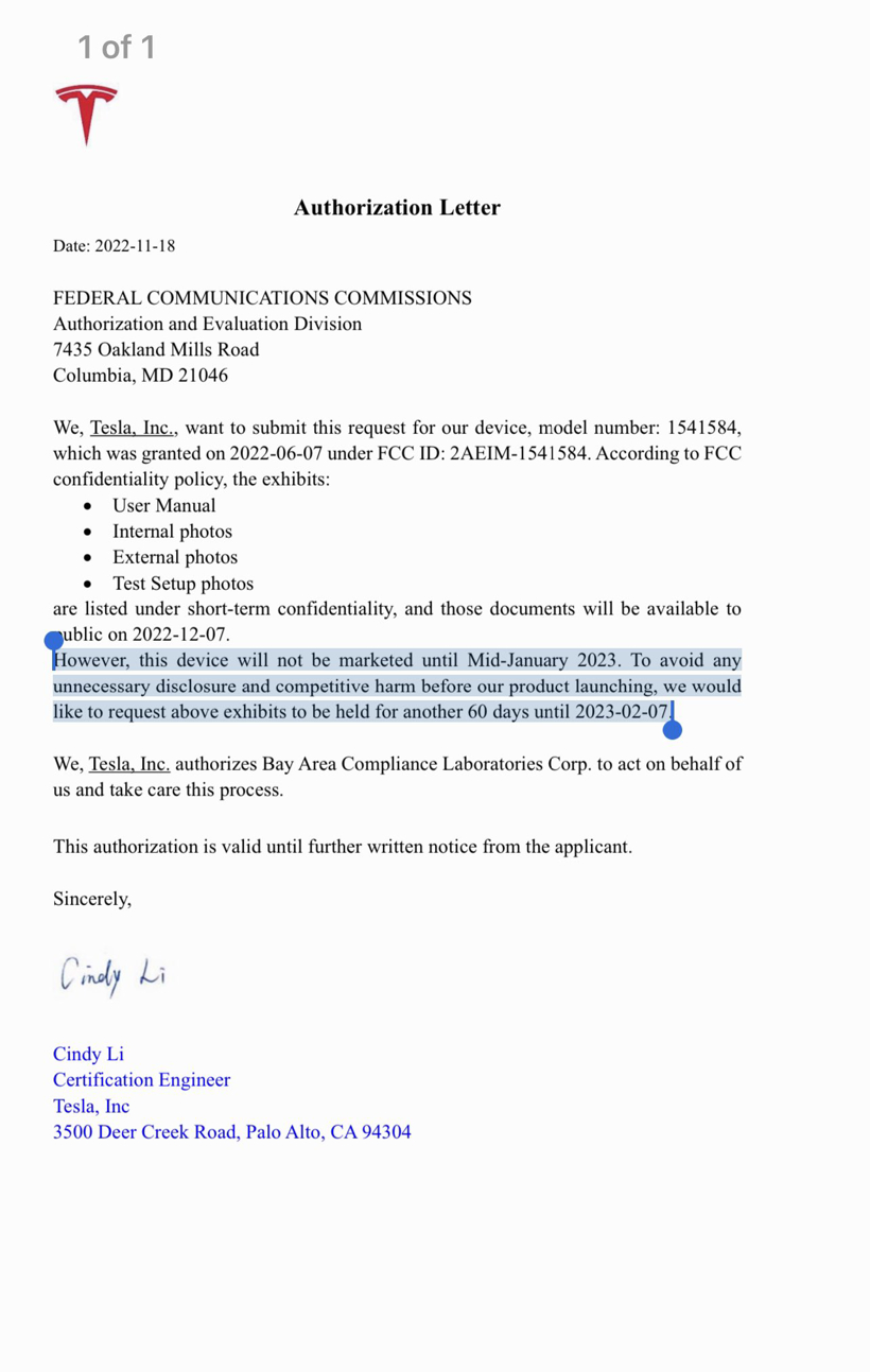 美国联邦通信委员会保密措施的有效期通常为6个月,12月7日是最后的期限,但特斯拉已经申请了延期。特斯拉在申请中证实,计划在“明年1月中旬”开始销售搭载新雷达的车辆。