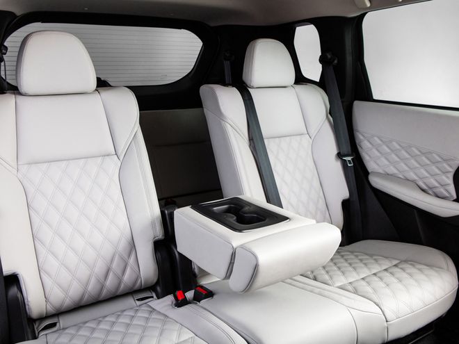 全新欧蓝德依然提供5座和7座两种座椅布局,7座版车型的第二排座椅可以40/20/40按比例放倒,第三排则可以50/50放倒。同时,前排乘客腿部空间还增加了25.40mm,第二排腿部也增加27.90mm。
