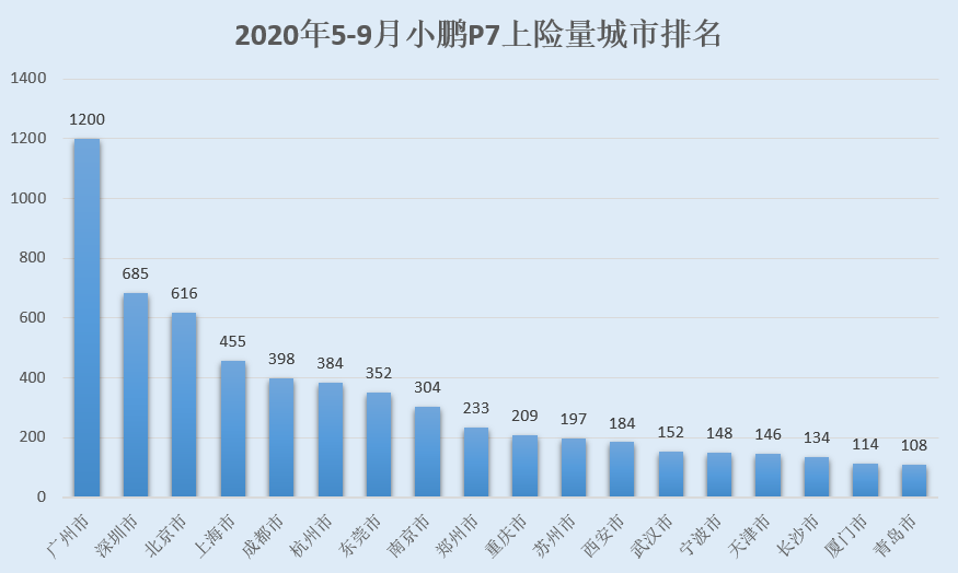 日前,智享车脑对小鹏P7在今年5月至9月的上险量进行分析后发现,一线城市的消费者对小鹏P7的接受度较高。数据显示,5-9月,小鹏P7全国总上险量为6808,其中广州、深圳、北京、上海、成都上险量排名前五,上险量占比依次是17.6%、10%、9%、6.6%、5.8%,杭州市、东莞市、南京市、郑州市等小鹏P7上险量也均为三位数。由此来看,小鹏P7主要销往了一、二线城市。
