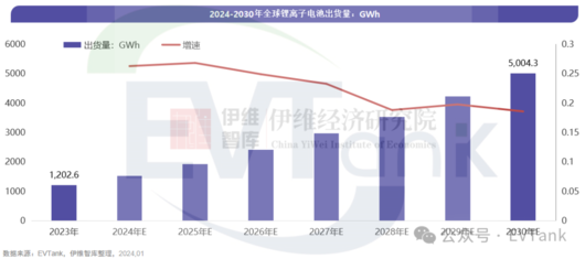 根据研究机构EVTank、伊维经济研究院联合中国电池产业研究院近日共同发布的《中国锂离子电池行业发展白皮书(2024年)》数据,2023年全球锂离子电池总体出货量1202.6GWh,同比增长25.6%。其中,2023年中国的出货量达到887.4GWh,在总体出货量中占比达到73.8%,且出货量占比继续提升。
