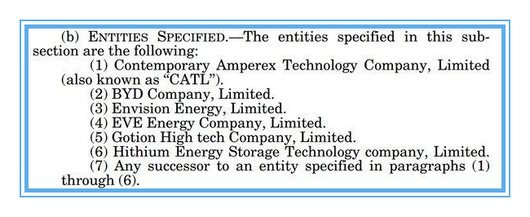 就像最近外媒报道的,作为去年12月22日通过的最新2024财年《国防授权法案》(简称NDAA)的一部分,美国国会议员已经禁止国防部购买中国最大电池制造商宁德时代和比亚迪生产的电池。