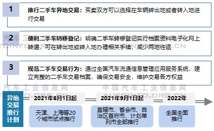 2021年4月7日,商务部、公安部、税务总局联合印发《关于推进二手车交易登记跨省通办 便利二手车异地交易的通知》,从制度方面着力解决二手车异地交易周期长、不便捷等问题,具体包括以下三点: